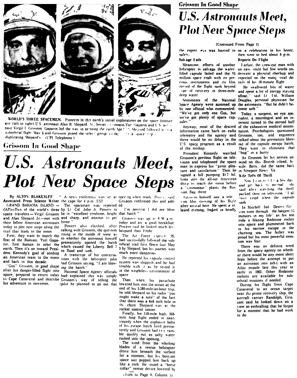— *Вирджил А. Гриссом (Virgil I. Grissom) (на англ.) «Warsaw Times-Union», 21.07.1961 в jpg — 1,19 Мб