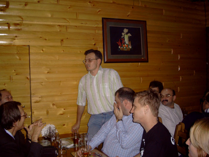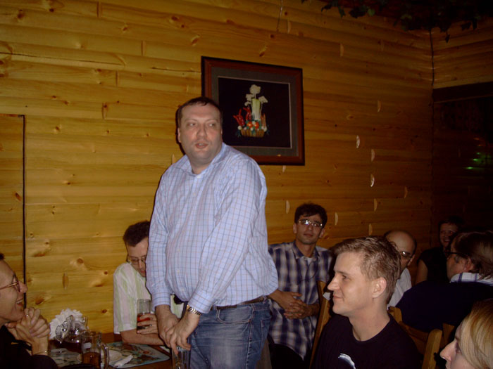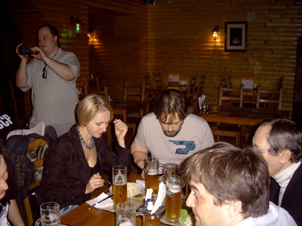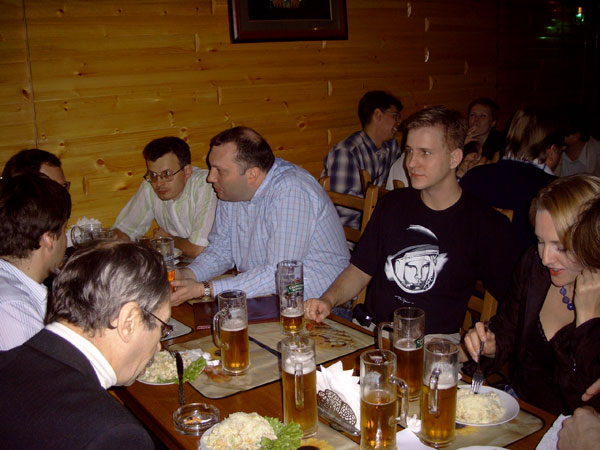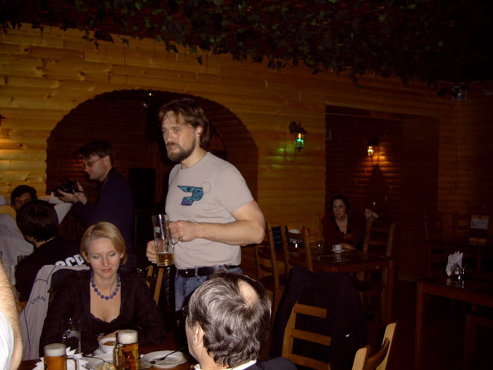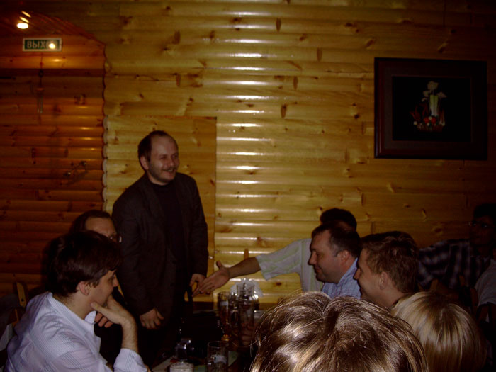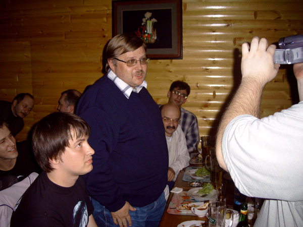 Вообще-то встреча прошла замечательно. Были тосты за ПС и за начало Космической Эры, потом по очереди вставали и представлялись. Очень многие были знакомы по несколько лет, но только виртуально. Я тоже до сегодняшнего был знаком лишь с пятью людьми из собравшихся. Там была ещё книга Павла Шубина про АМС, которую надеялись издать, я очень хотел её посмотреть и даже попозже посмотрел, но ничего не запомнил. А не запомнил по довольно банальной причине: один из собравшихся (помню, но не скажу) произнёс довольно банальную фразу: " А не выпить ли нам водки?" Бурных восторгов вообще-то предложение не вызвало, ну, и пришлось мне согласиться. Ох, не надо было этого делать! Пиво с водкой на меня действуют адекватно. Пива я выпил изрядно. Отмечу однако я сразу же решительно заявил: "Не более 100 грамм!".