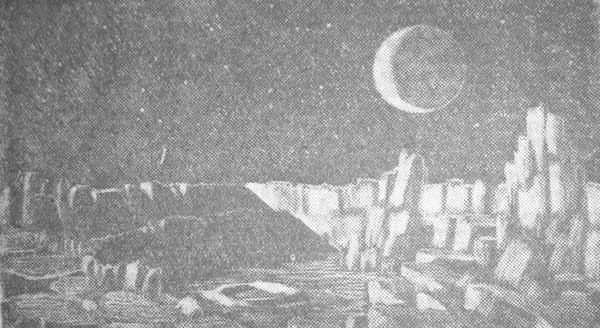 Скоро заканчиваются все с'емки «на земле» и с'емочная группа начнет работать на «луне». Здесь и режиссеру, и оператору, при участии научных консультантов, предстоит проделать труднейшую работу. Они должны снять посадку астроплана на луну, лунные расщелины, сигнал на землю, показать обратный путь с луны.