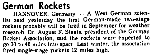 — *Полет «Атласа» оказался красочен (Test flight of Atlas missile proves colorful) (на англ.) «Ellensburg Daily Record», 1.08.1961 в jpg — 302 кб