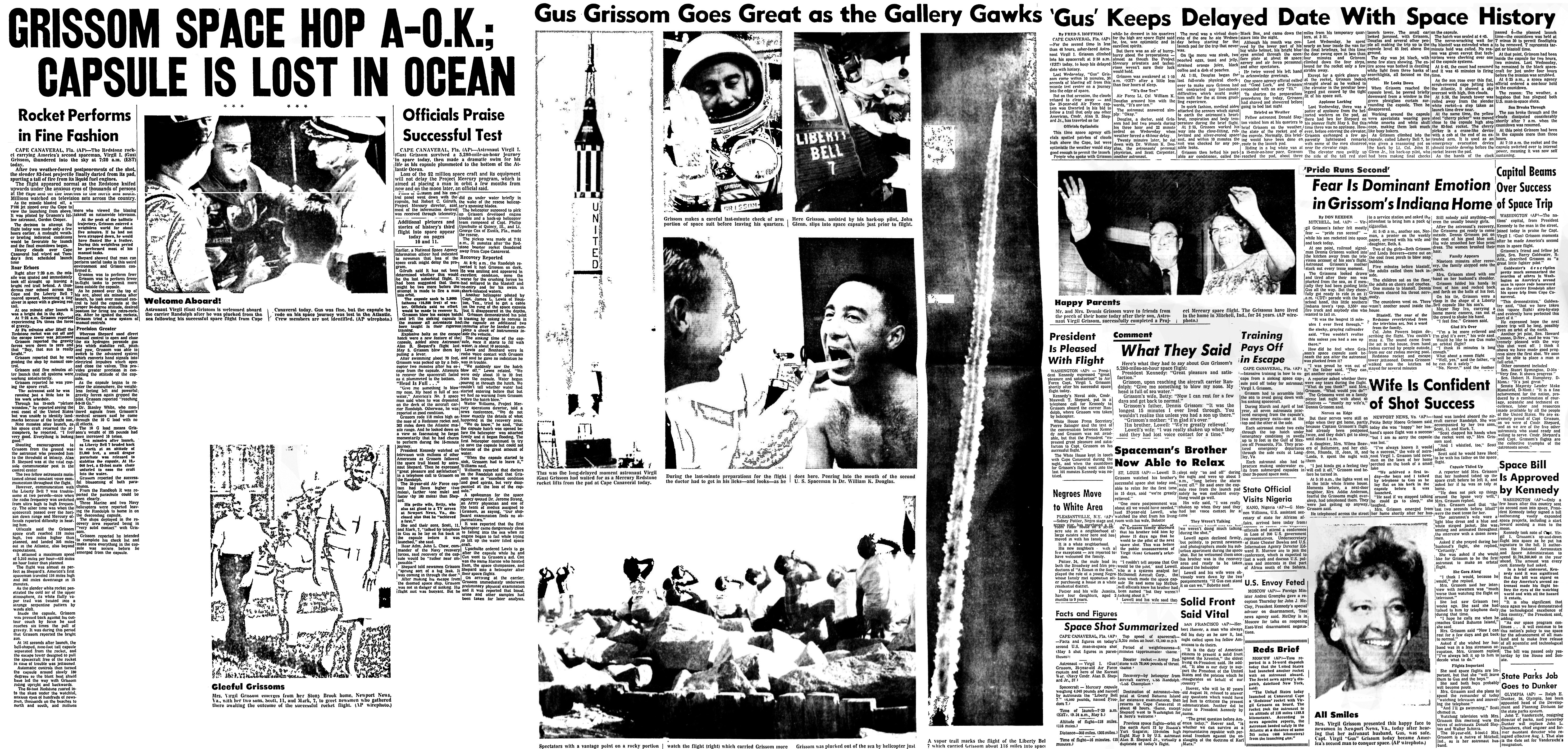 — *Космический скачок Гриссома А-ОК (Grissom Space Hop A-O.K.) (на англ.) «Spokane Daily Chronicle», 21.07.1961 в jpg — 5,05 Мб