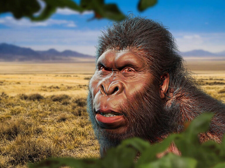 Вот от этого существа, которое распространилось, вероятно, достаточно широко (от Тихого океана до Атлантики) и произошли три вида основных человекообразных - 13-10 млн.лет назад на крайнем востоке появился орангутанг, да так и застрял в райских лесах Индонезии, не меняясь практически до наших дней, дав 2-3 вида из-за того, что Индонезия из огромного полуострова превратилась в архипелаг и каждый вид эволюционировал на своём острове.