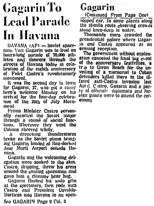 — *Гагарин возглавит парад в Гаване (Gagarin To Lead Parade In Havana) (на англ.) «Lewiston Evening Journal», 25.07.1961 в jpg - 167 кб