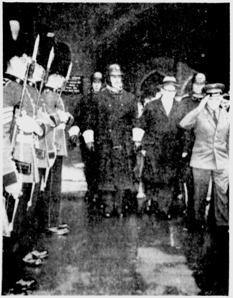 Космонавт был одет в свою форму ВВС. С ним прибыл советский посол Александр Солдатов. Около 7'000 человек стояли перед дворцом, чтобы увидеть, как машина с Гагариным въезжает в ворота.