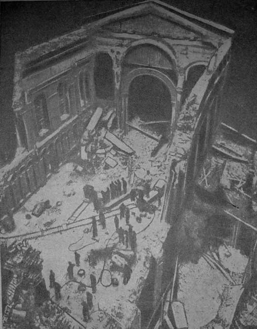 ![]() Эгейское море Британские самолеты «Бофайтер», снабженные ракетными установками, атакуют вооруженное торговое судно. «У них пробивная сила 6-дюймового морского снаряда», — говорят летчики про ракетные снаряды. ![]() АНГЛИЯ Известная лондонская церковь Гардз Чэпель, разрушенная «летающей бомбой» во время службы. Много молящихся было убито. Передано по бильду |