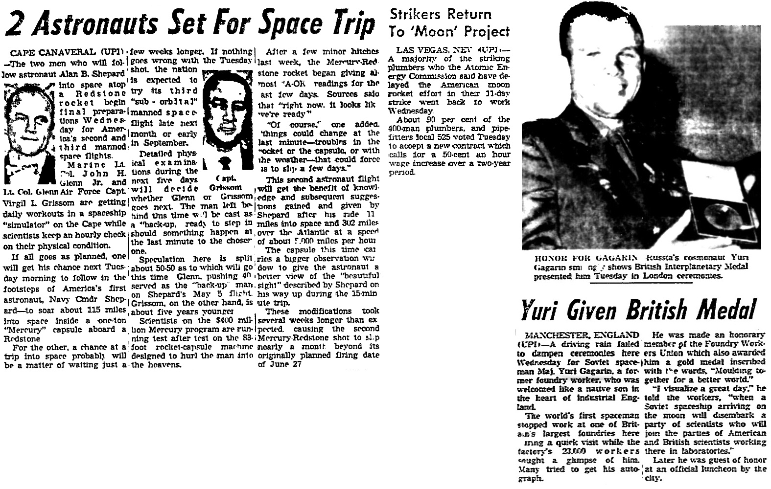 - *Астронавты готовятся ко второму полету (сайт не открывается) (на англ.) «The Washington Observer», 15.07.1961