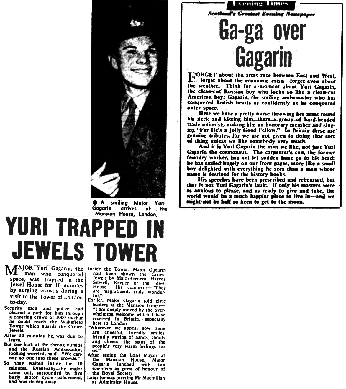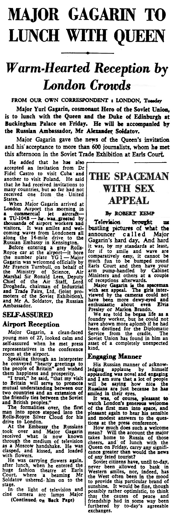 Комментируя появление космонавта во дворце – едва-ли подходящем месте для марксиста – московское радио сказало: «В соответствии с британской традицией, прием иностранного гостя правящим монархом является высочайшей почестью».