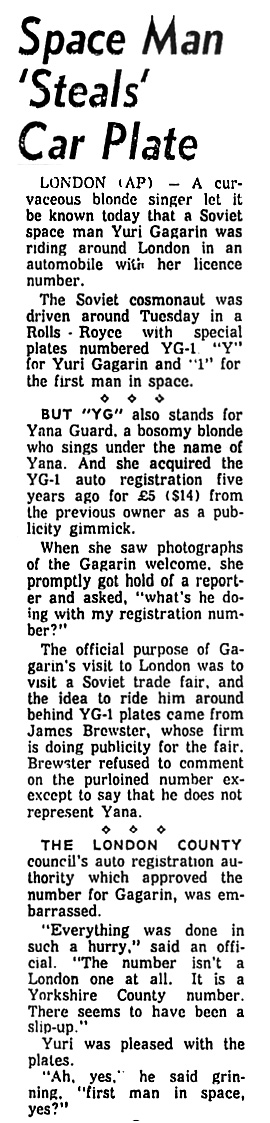 - *Гагарин покидает Лондон (сайт не открывается) (на англ.) «Edmonton Journal», 15.07.1961